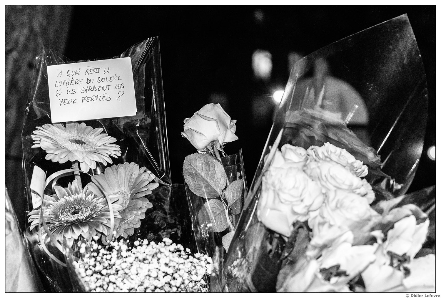 Un silence éloquent, les visages marqués par la douleur et la solidarité, au lendemain des attentats.